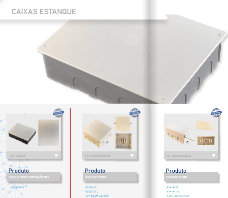 Dispõe de uma ampla gama de produtos para instalação elétrica e iluminação, entre os quais se incluem interruptores, tomadas, sensores, painéis LED interiores e exteriores, downlights, projetores LED, lâmpadas LED de vários formatos, caixas de derivação, quadros elétricos em plástico, suportes para lâmpadas e muitos outros artigos.
